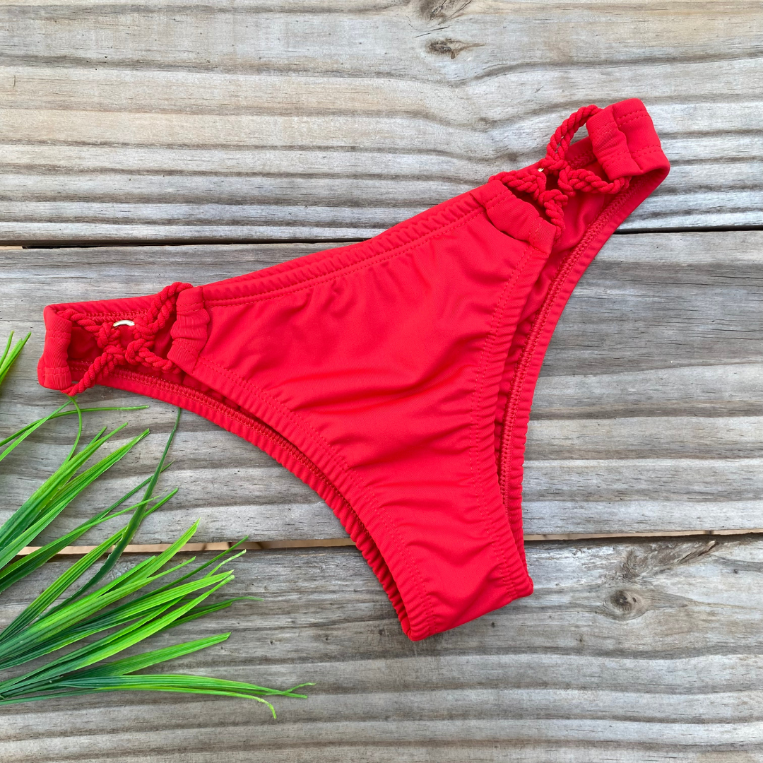 - Calcinha modelo tanga tradicional, com argola dourada e cordão torcido na lateral