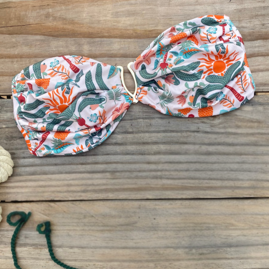 Com modelagem tomara que caia desenvolvida para realçar o busto com conforto e elegância, este top possui detalhe central dourado e drapeado estratégico que acomoda os seios sem achatar. A lateral mais larga e a amarração nas costas garantem excelente sustentação, enquanto as alças removíveis oferecem versatilidade. Não acompanha bojo, mas possui abertura para colocação. Confeccionado em tecido de alta qualidade, resistente ao cloro e ao sol, é uma peça durável e sofisticada. Edição Limitada – exclusividade para quem valoriza cada detalhe.